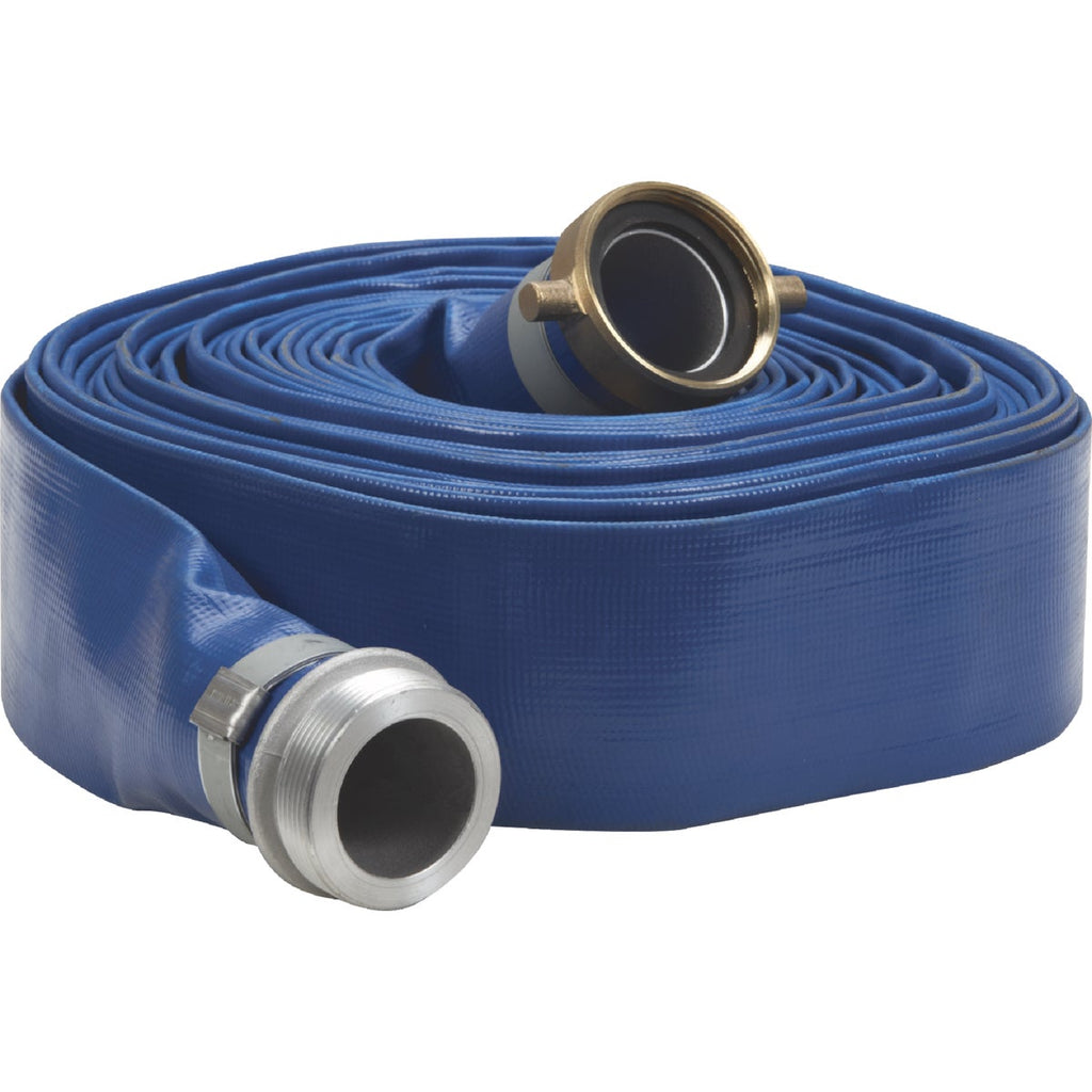 Apache 2 In. x 50 Ft. Blue Reinforced PVC Lay Flat Discharge Hose with Male/Female Connections