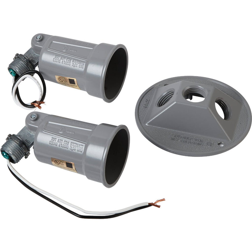 Bell 150W Aluminum 2-Bulb Weatherproof Outdoor Lampholder With Round Cover