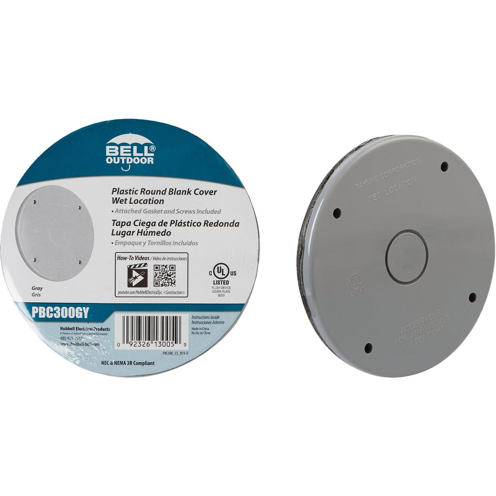 Bell Single Gang Blank Round Polycarbonate Gray Weatherproof Outdoor Box Cover