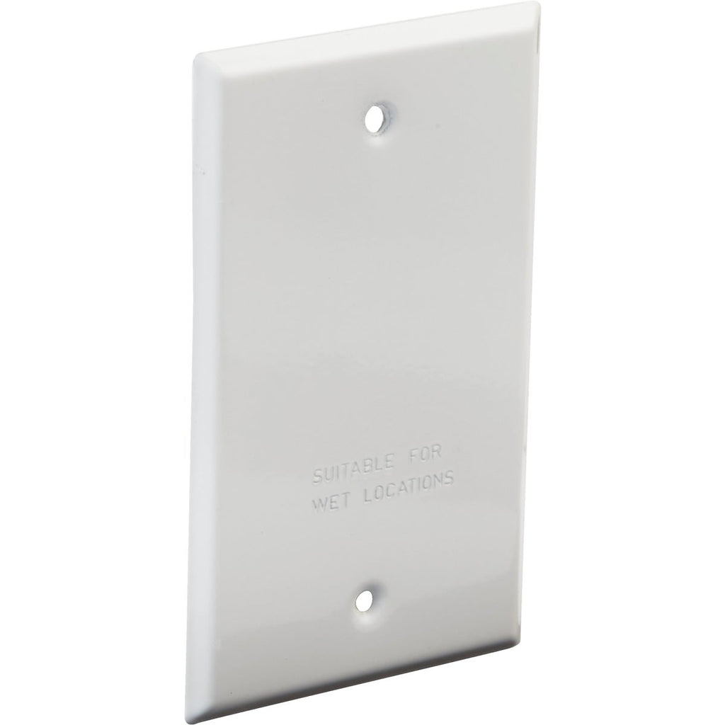 Bell Single Gang Rectangular Die-Cast Metal White Blank Outdoor Box Cover, Shrink Wrapped