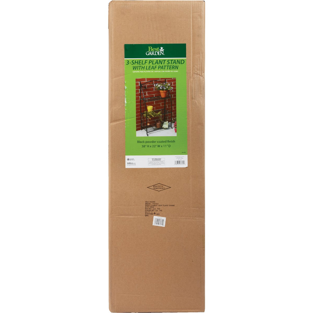 Best Garden Black Powder-Coat Steel 38 In. H. 3-Shelf Indoor/Outdoor Plant Stand