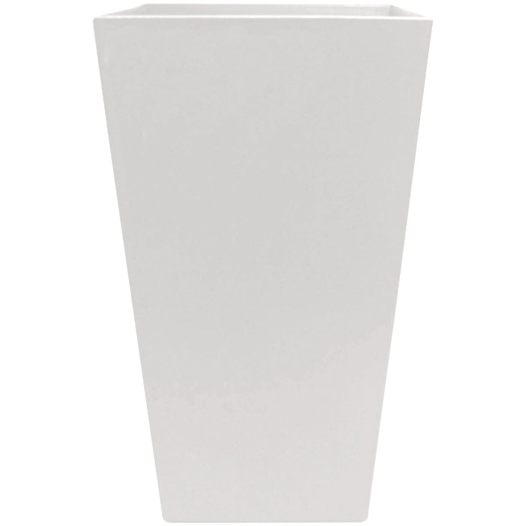 The Finley tall square large planter includes a false deck to reduce soil use and allows for drainage. Spruce up your patio, deck, front door entryway or indoor space with this bold planter. Features a subtle textured finish and a sleek tapered design, the Finley Collection is durable and will last for many years. Includes a sealed bottom to prevent water damage indoors. Optional knock-out drainage holes can be added if used outdoors. Self-watering tray insert encourages healthy root growth, the Finley planter is made from 100% recycled ocean-bound plastic sourced from Plastic Bank, an organization that builds ethical recycling ecosystems in coastal communities. Great for indoor or outdoor use.