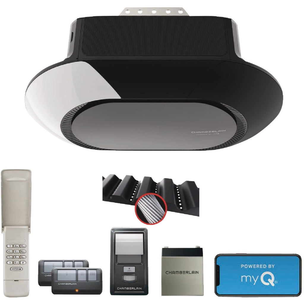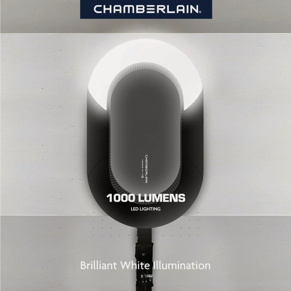 The garage is your homes workhorse. Its where you keep your tools, sports equipment and toys, and a place of refuge where some of your biggest ideas come to life. Unleash your garages full potential with the B4613T Chamberlain Garage Door Opener powered by myQ. The sleek new design combined with superior lighting and smart home technology lets you maximize the value of your garage. Download the myQ app and follow the steps to connect your new garage door opener so you can control, secure and monitor the garage from your smartphone. Integrated LED lighting purposely brightens high traffic areas of the garage, for reliable, long-lasting light when you need it - 1,000 lumens, energy efficient, lasts 10X longer than a standard light bulb and never change a light bulb again. Integrated Bluetooth technology reduces setup time and makes it even easier to connect to the myQ app, other myQ devices and smart home technology solutions. The B4613T is California SB-969 compliant. Powered by Chamberlains PLUS Lift Power System, the B4613T delivers lifting force equivalent to 3/4 HP for effortless lifting and reliable performance you can count on. Steel-reinforced belt drive is constructed with high-grade materials for years of worry-free, long lasting, ultra-quiet operation perfect for attached garages. Includes 2 pre-programmed, 3-button remotes that let you control a combination of up to three openers or Chamberlain interior light modules (sold separately); secure encrypted technology boosts remote range up to 1,500 ft. Unmatched Security+2.0 100 Billion code encryption protects against hacking, and Posilock anti-theft protection assures that once the door closes, it stays locked. Online installation videos, BILT 3D instructions, pre-programmed remotes, snap-lock rail system and tech support ensure installation goes smoothly.