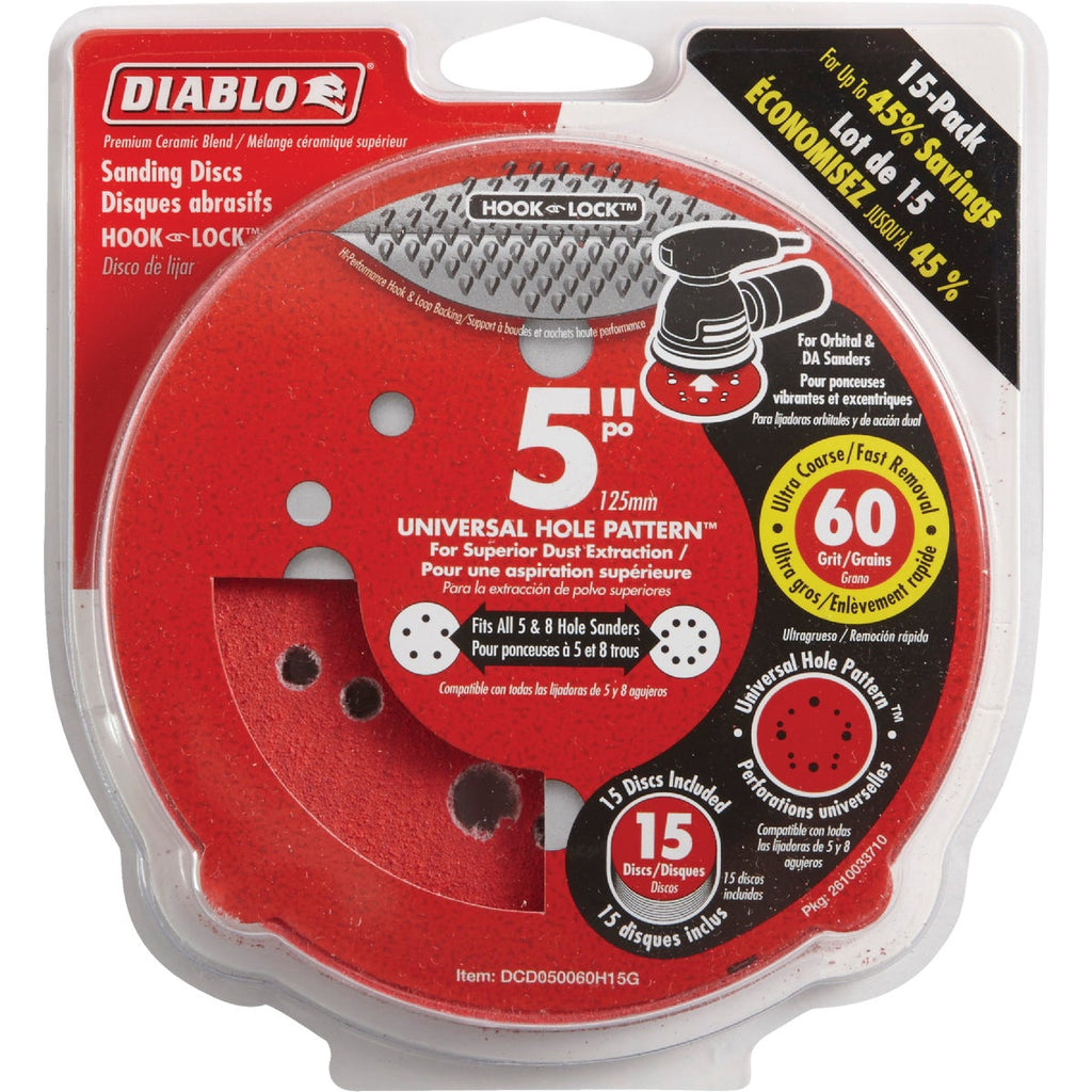 Diablo 5 In. 60-Grit Universal Hole Pattern Vented Sanding Disc with Hook and Lock Backing (15-Pack)
