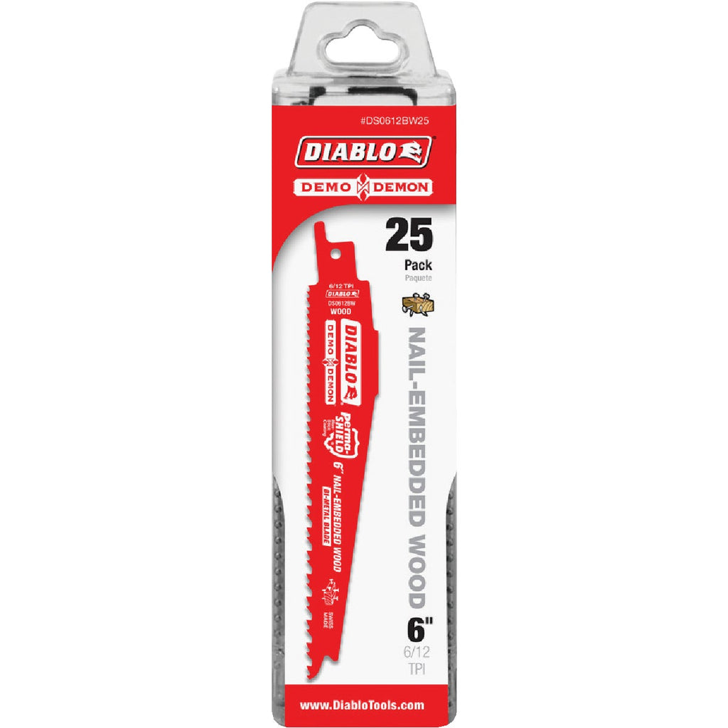 Diablo Demo Demon 6 In. 6/12 TPI Wood w/Nails Reciprocating Saw Blade (25-Pack)