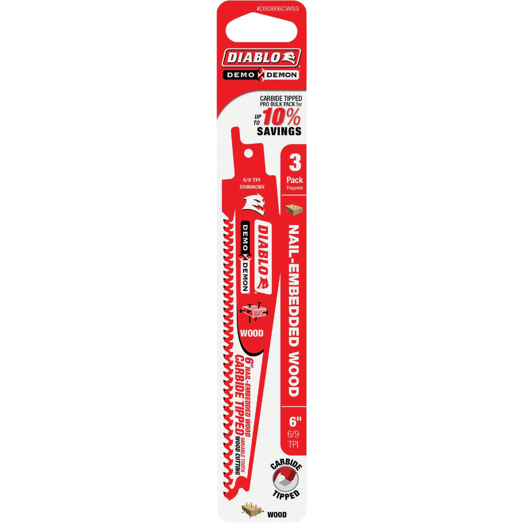 Diablo Demo Demon 6 In. 6 TPI Carbide Wood w/Nails Reciprocating Saw Blade (3-Pack)