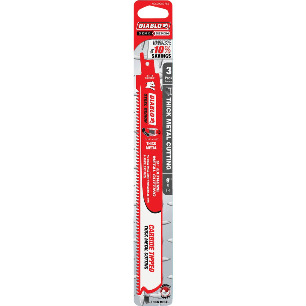 Diablo Steel Demon 9 In. 8 TPI Carbide Thick Metal Reciprocating Saw Blade (3-Pack)