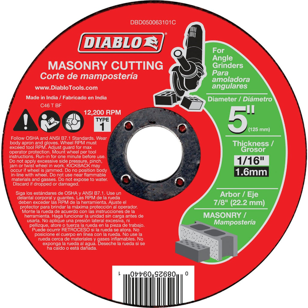 Diablo Type 1 5 In. x 1/16 In. x 7/8 In. Masonry Cut-Off Wheel