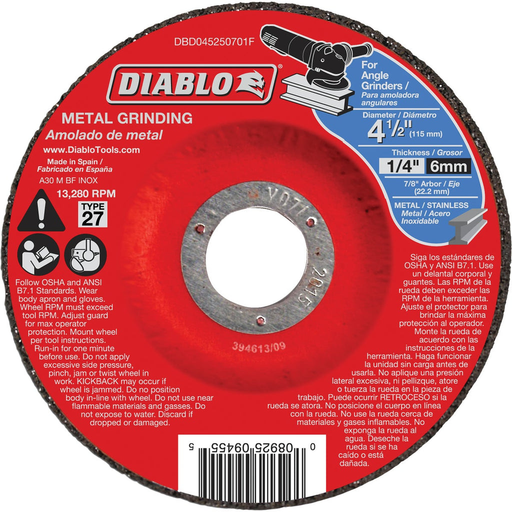 Diablo Type 27 4-1/2 In. x 1/4 In. x 7/8 In. Metal Grinding Cut-Off Wheel