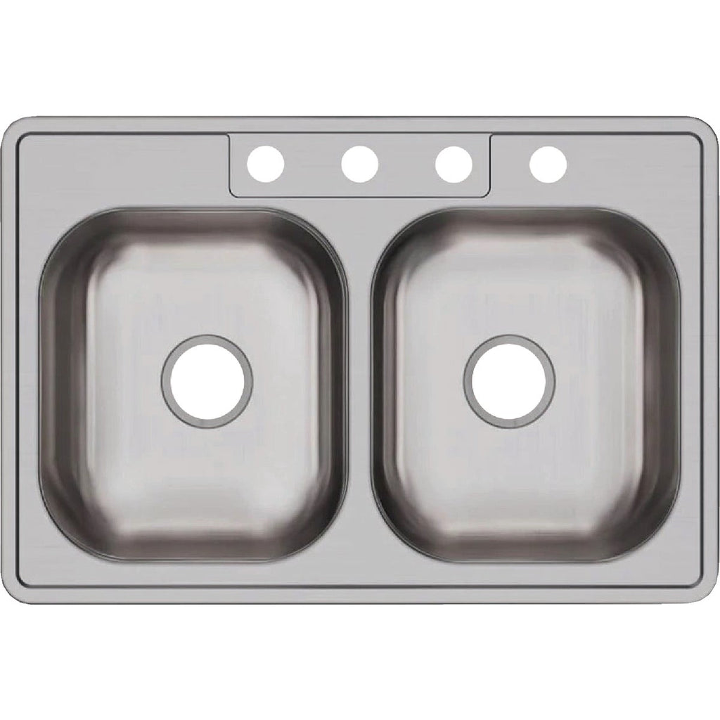 Elkay Dayton 33 In. x 22 In. x 6-9/16 In. Equal Double Bowl Drop-In Kitchen Sink, Stainless Steel