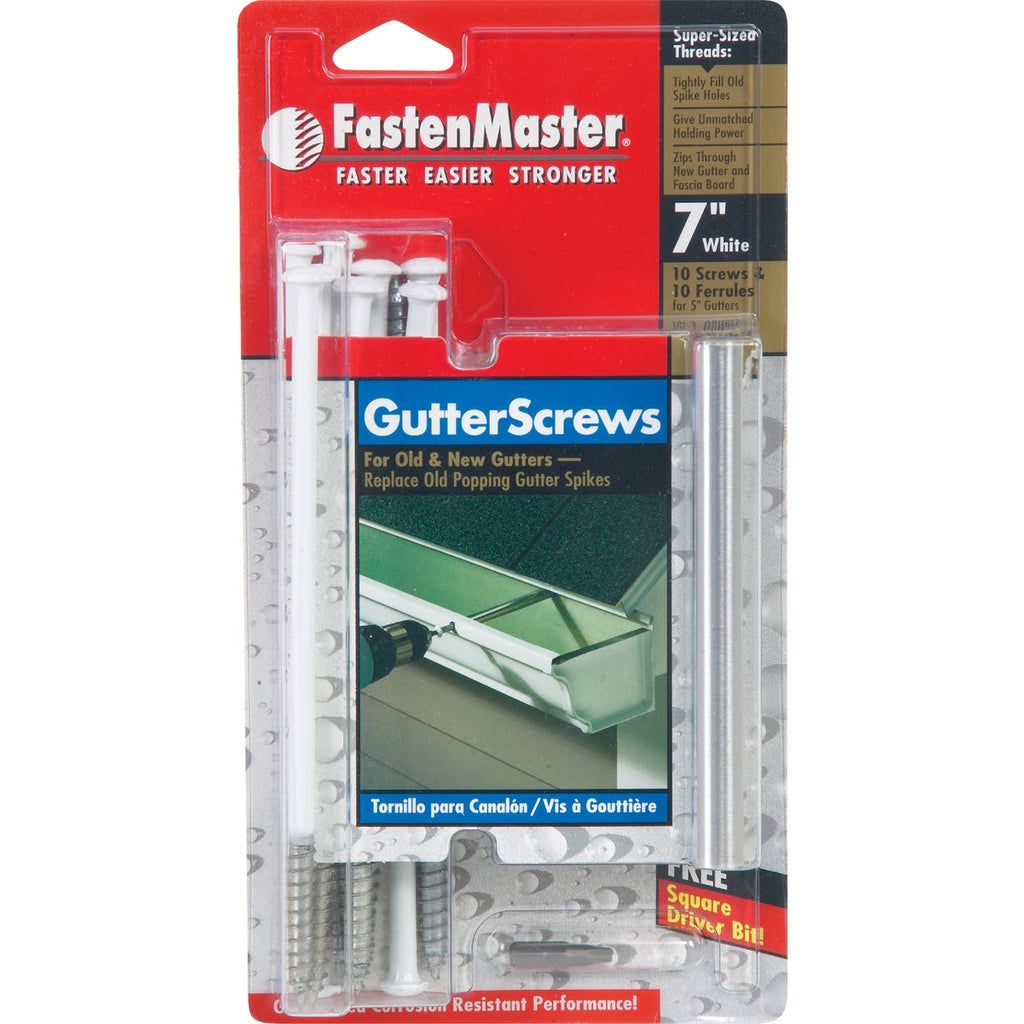 Fastenmaster 7 In. Universal White Gutter Screw & Ferrule, (10-Pack)