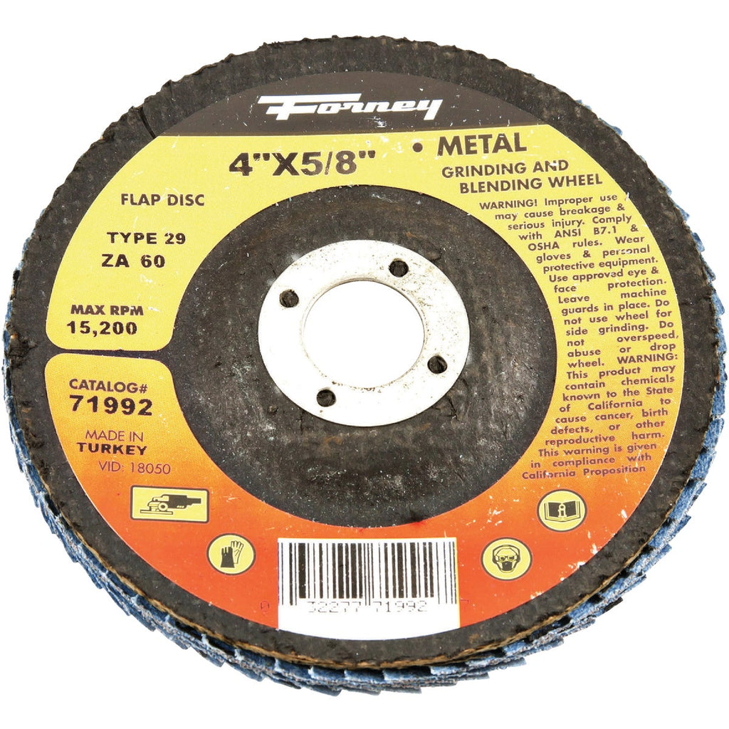 Forney 4 In. x 5/8 In. 60-Grit Type 29 Blue Zirconia Angle Grinder Flap Disc
