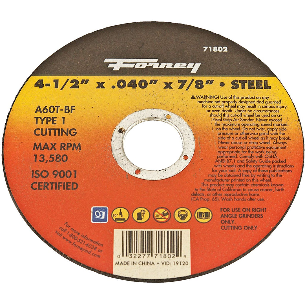 Forney Type 1 4-1/2 In. x 0.040 In. x 7/8 In. Steel Cut-Off Wheel