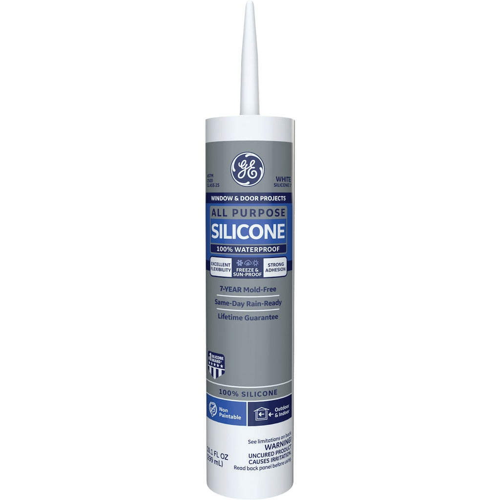 GE All Purpose Window and Door sealant is a 100% silicone and 100% weatherproof sealant that is ideal for areas that could be exposed to harsh weather conditions. Its same-day rain-ready formula is resistant to shrinking, cracking, freezing, and sunlight, so its ideal for interior and exterior applications. GE All Purpose Window and Door sealant is also formulated to resist stain-causing mold and mildew growth, and it comes with a seven-year mold-free product protection. Use this versatile sealant on windows, doors, siding, trim, molding, baseboards, vents, basements, attics, and around wires and pipes. Our sealant is extremely flexible and offers exceptionally strong adhesion, and it even meets ASTM C-920,Class 25 requirements.