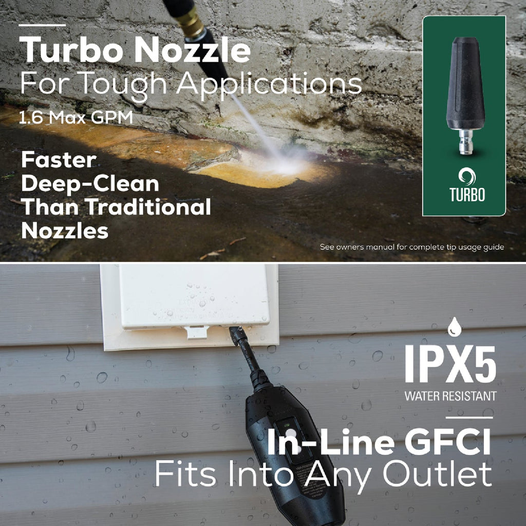 The Greenworks 3000-PSI Pressure Washer is the most powerful residential electric pressure washer available and has a 10 Year Motor Warranty. Industry-leading workhorse boasting 2x the cleaning power, in half the time. With a hassle-free push-button start, the Greenworks Pro 3000-PSI Pressure Washer powers up easily and gets to work in no time. The heavy-duty smart sensing TRUBRUSHLESSTM motor automatically adjusts pressure and flow to deliver the perfect amount of water for each nozzle tip. And you'll have your pick for any job with the included 15, 25, and 40 nozzles, turbo nozzle and soap nozzle. Ready to clean concrete, brick, fences, decks, houses, cars, RVs, boats, and more! Equipped with an extra-long 35 Ft. power cord with in-line GFCI and waterproof power plug, you'll have plenty of flexibility to get the job done safely. The hassle-free 25 Ft. kink-resistant hose eliminates frustrating hose tangles - and with on-board accessory storage, you'll always have what you need at your fingertips. The rugged wheelbarrow steel-frame design with 10 In. never-flat wheels can be stored vertically - taking up 50% less space in your garage or shed. The Greenworks Pro 3000-PSI is certified by the Pressure Washer Manufacturers Association (PWMA), which sets the standards for best-in-class pressure washers - guaranteeing trusted performance. Backed by an industry-best 10-year motor warranty and 3-year tool warranty, the Greenworks Pro 3000-PSI Pressure Washer is built to stand up to most stubborn dirt and grime anytime you need it.