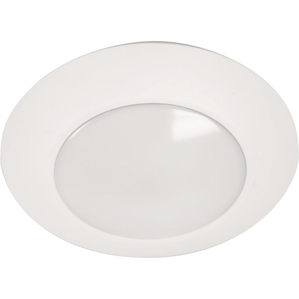 Surface mount LED (light emitting diode) recessed lighting with easy install-from-below mounting. Designed for use in new construction, remodel, and retrofit installation, without needing a housing - it can wire directly into a j-box. The 3000K color temperature provides your home with a soft white light that is great for any occasion. Install as a closet light, hallway light, kitchen light, and more. Maintenance-free LED lights with 50,000 life hours (equivalent to 22-years at 6-hours/day or 45-years at 3-hours/day). Good brightness at 925 lumens with a color temperature of 3000K (soft white). Surface mount LED designed for continuous dimming down to 10%, with select dimmers; see dimming guide for more information. Produces light equivalent to a 65-watt bulb yet uses just 15.7 watts. 92 CRI (color rendering index) title 24 compliant technology provides near sunlight quality light for true color rendering and consistency inside your home. Air-Tite, wet location listed. Energy Star rated, UL (Underwriter's Laboratories) listed.