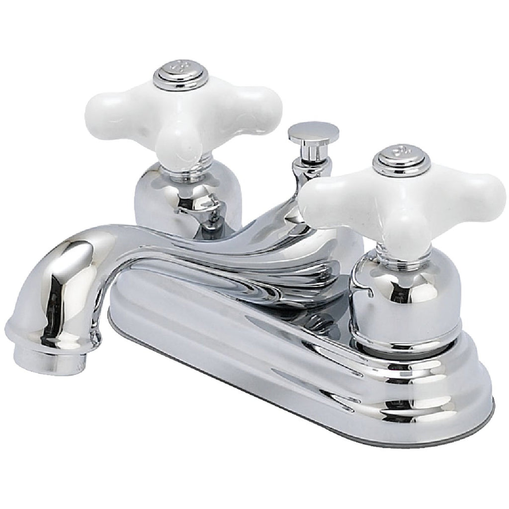 Home Impressions Chrome 2-Handle Cross Knob 4 In. Centerset Bathroom Faucet with Pop-Up