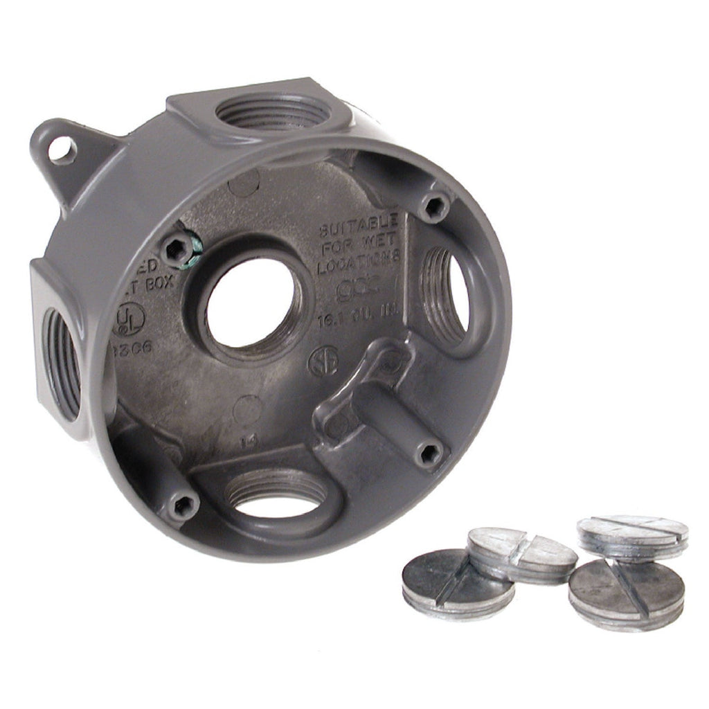 Hubbell 4 In. 5-Outlet 3/4 NPT Gray Aluminum Weatherproof Electrical Box
