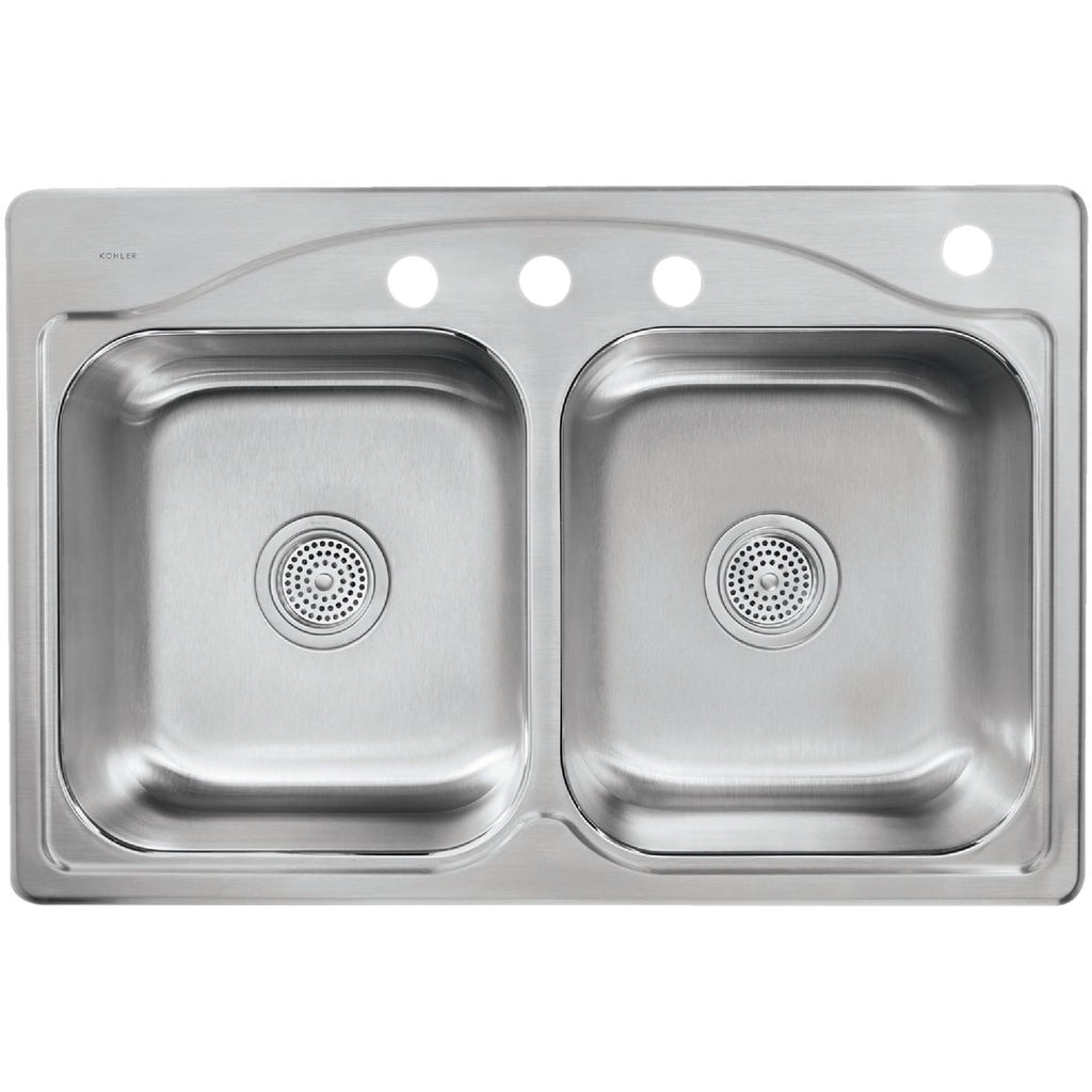 Kohler Cadence Double Bowl 33 In. x 22 In. x 8-5/16 In. Deep Stainless Steel Drop-In Kitchen Sink