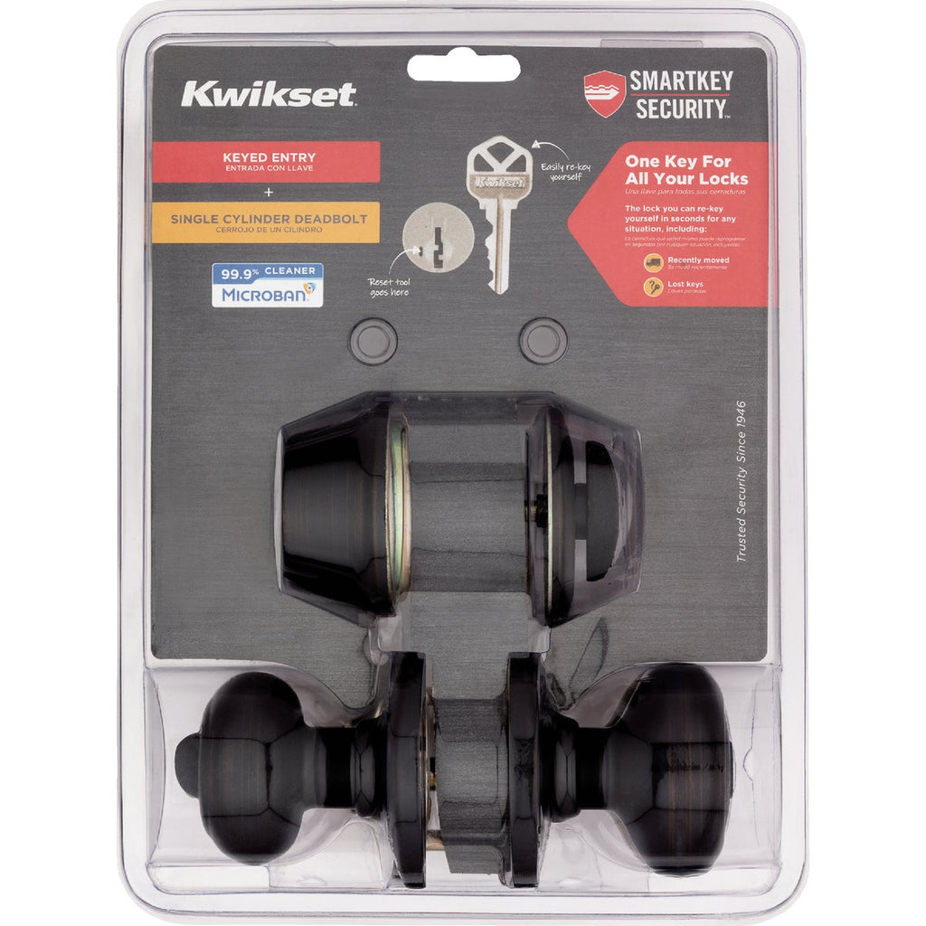 Kwikset Cove Venetian Bronze Deadbolt & Door Knob Combo with Smartkey