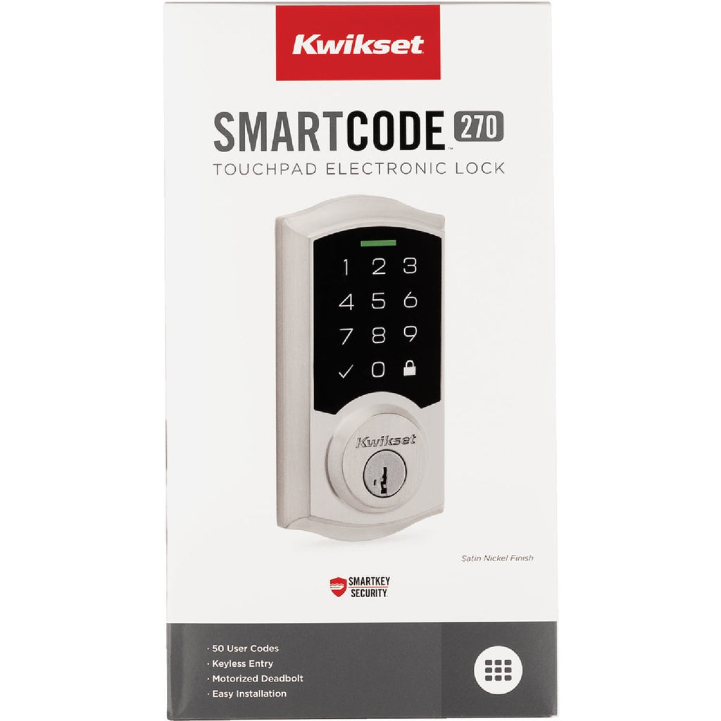 Step up to designer styles and superior security with Kwikset Signature Series products. The SmartCode touchscreen electronic deadbolt is a one-touch locking motorized deadbolt. With your personalized code, you can enter your home with the convenience of keyless entry and the back-lit keypad provides increased visibility. It features patented SecureScreen technology to prevent code detection from fingerprints on the touchscreen. SmartCode is easy to install, program and use, and operates on 4 AA batteries. It also features SmartKey Security as the back-up keyway. This single cylinder deadbolt can be locked or unlocked by using the keypad or key from the outside as well as the turn button from the inside.
