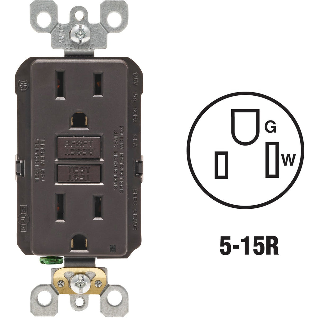 Leviton SmartlockPro Self-Test 15A Brown Residential Grade Rounded Corner 5-15R GFCI Outlet