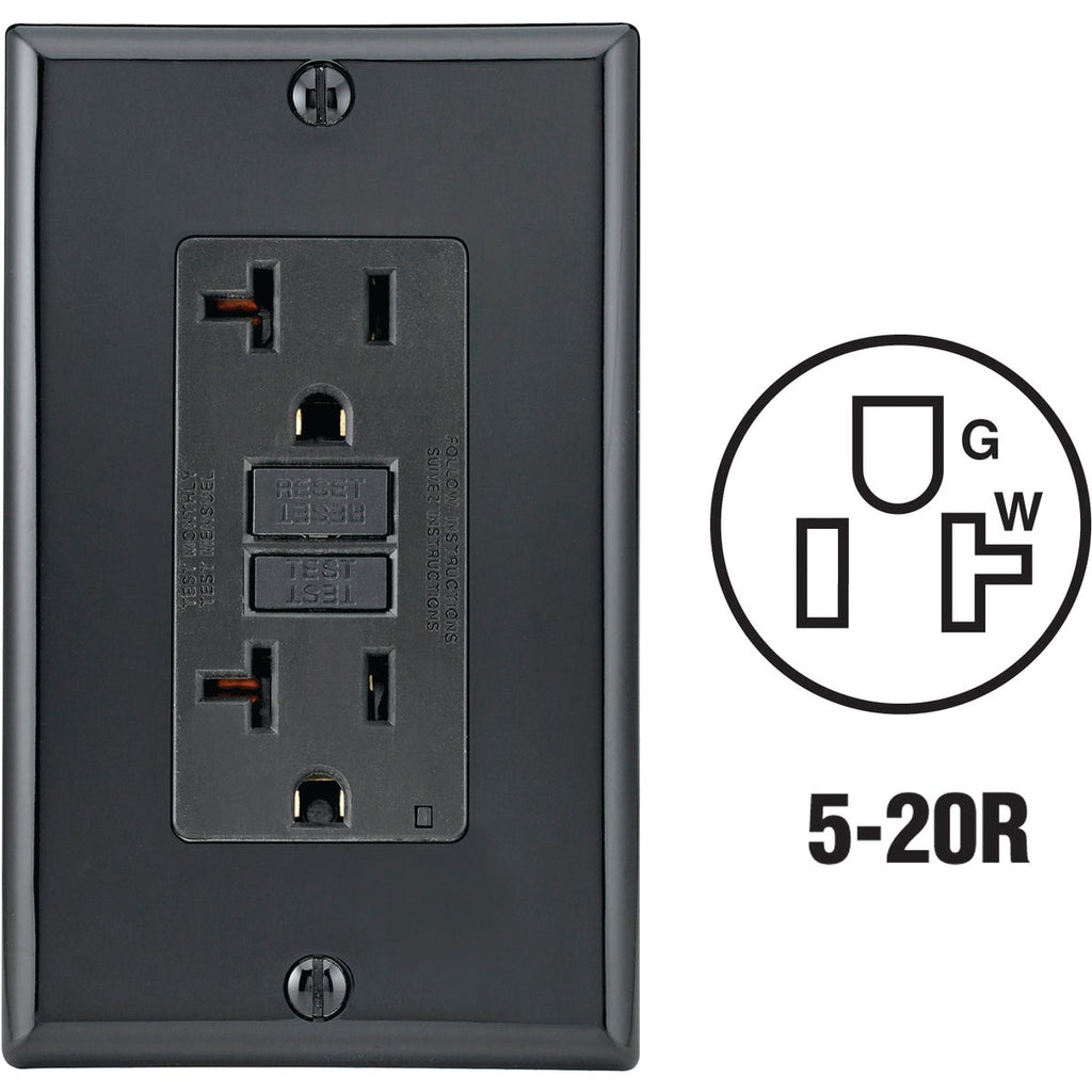 Leviton SmartlockPro Self-Test 20A Black Commercial Grade 5-20R GFCI Outlet with Wall Plate