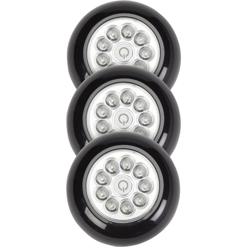 Light It 9-Bulb Black LED Battery Tap Light (3-Pack)
