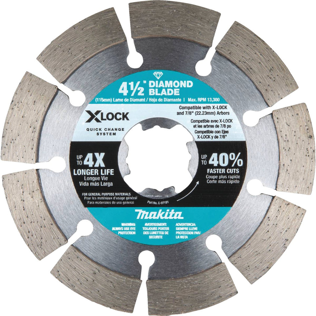 Makita X-LOCK 4-1/2 In. Segmented Rim Dry/Wet Cut Diamond Blade