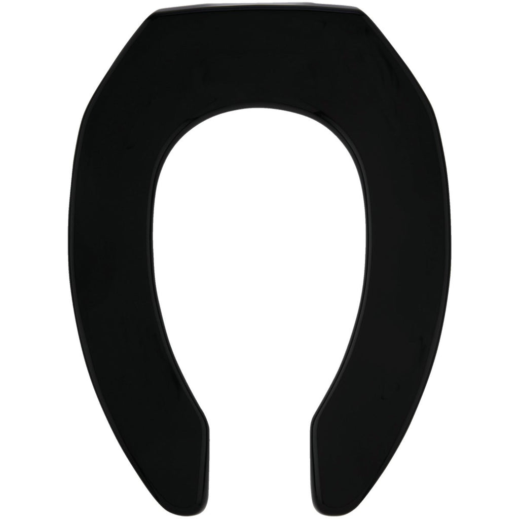 Mayfair Commercial STA-TITE Elongated Open Front Black Molded Plastic Toilet Seat