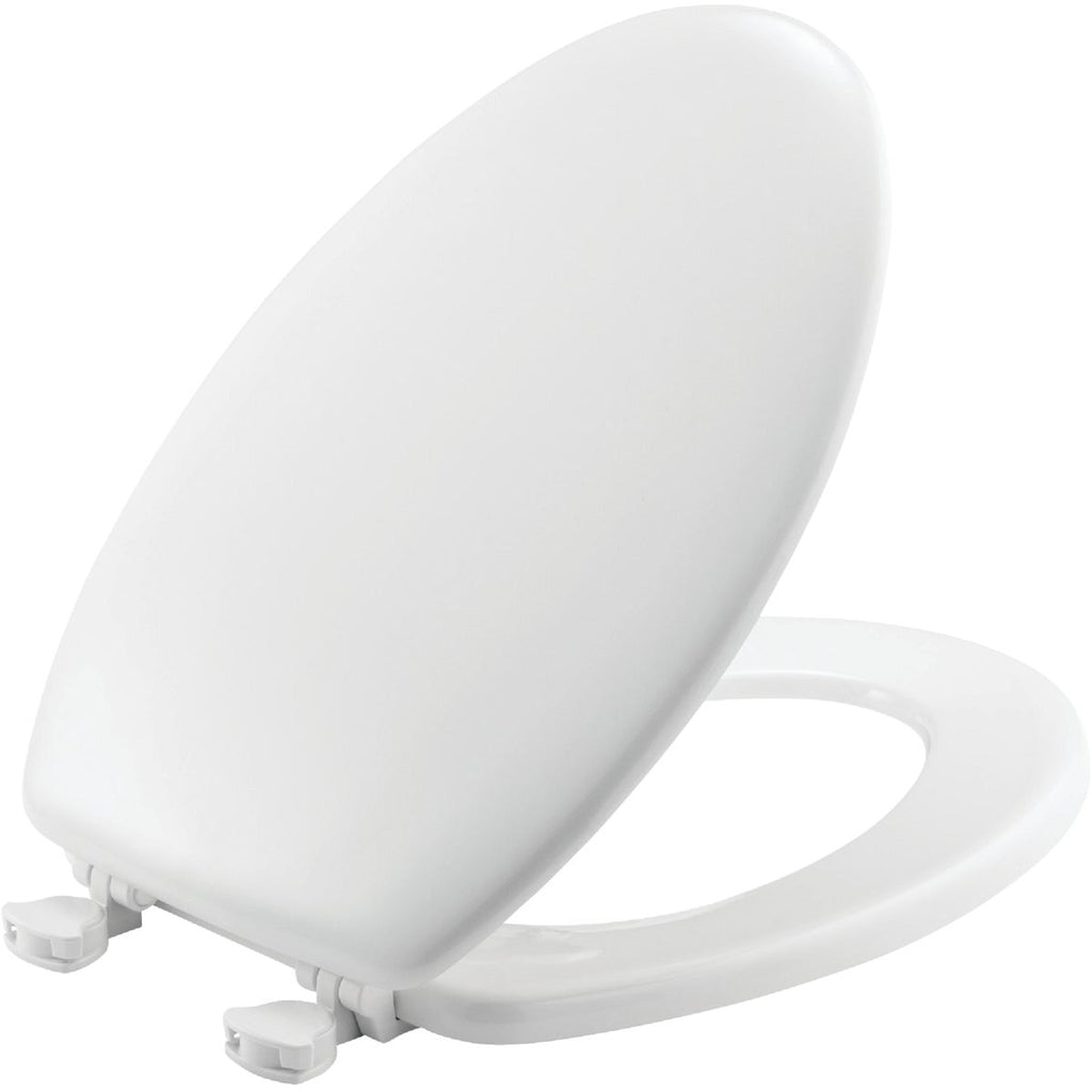 Mayfair Elongated Closed Front White Wood Toilet Seat with Easy Clean & Change Hinges