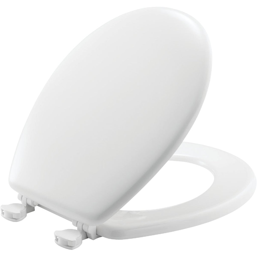 Mayfair Round Closed Front White Wood Toilet Seat with Easy Clean & Change Hinges