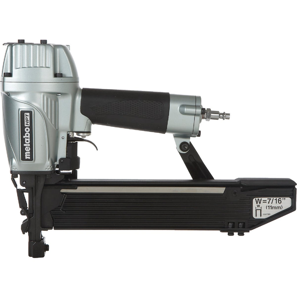 This construction stapler accepts 1" to 2", 16-gauge standard crown staples. It is the ideal stapler for sheathing, lattice work, or underlayment. At only 4.4 lb., it is well-balanced to make work a breeze. The durable grip adds comfort while preventing slippage. Loading and reloading staples is easy with a top load open magazine. The user can quickly check staple quantity so that blank drives are avoided. This stapler features a tool-less, easy-to-clear nose for quick and simple extraction should a staple jam during use. A simple turn of the depth of drive dial allows the user to easily adjust the drive depth, accommodating woods of varying density for appropriate holding power based on the application. Combined with Hitachi's 5 year warranty, this stapler is guaranteed to deliver for years to come.