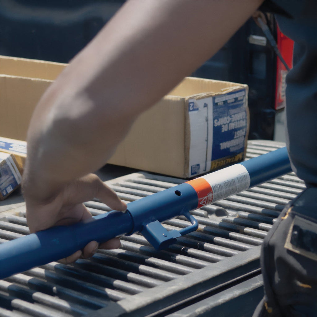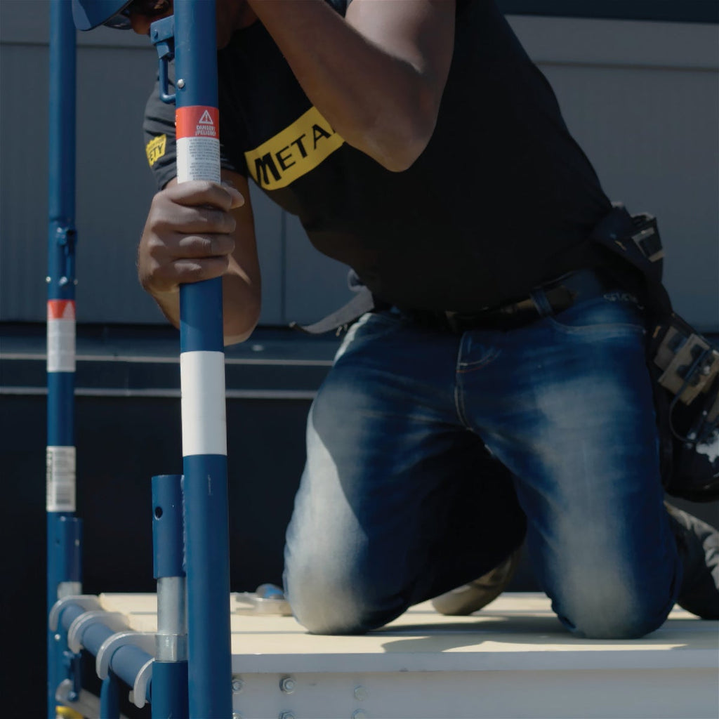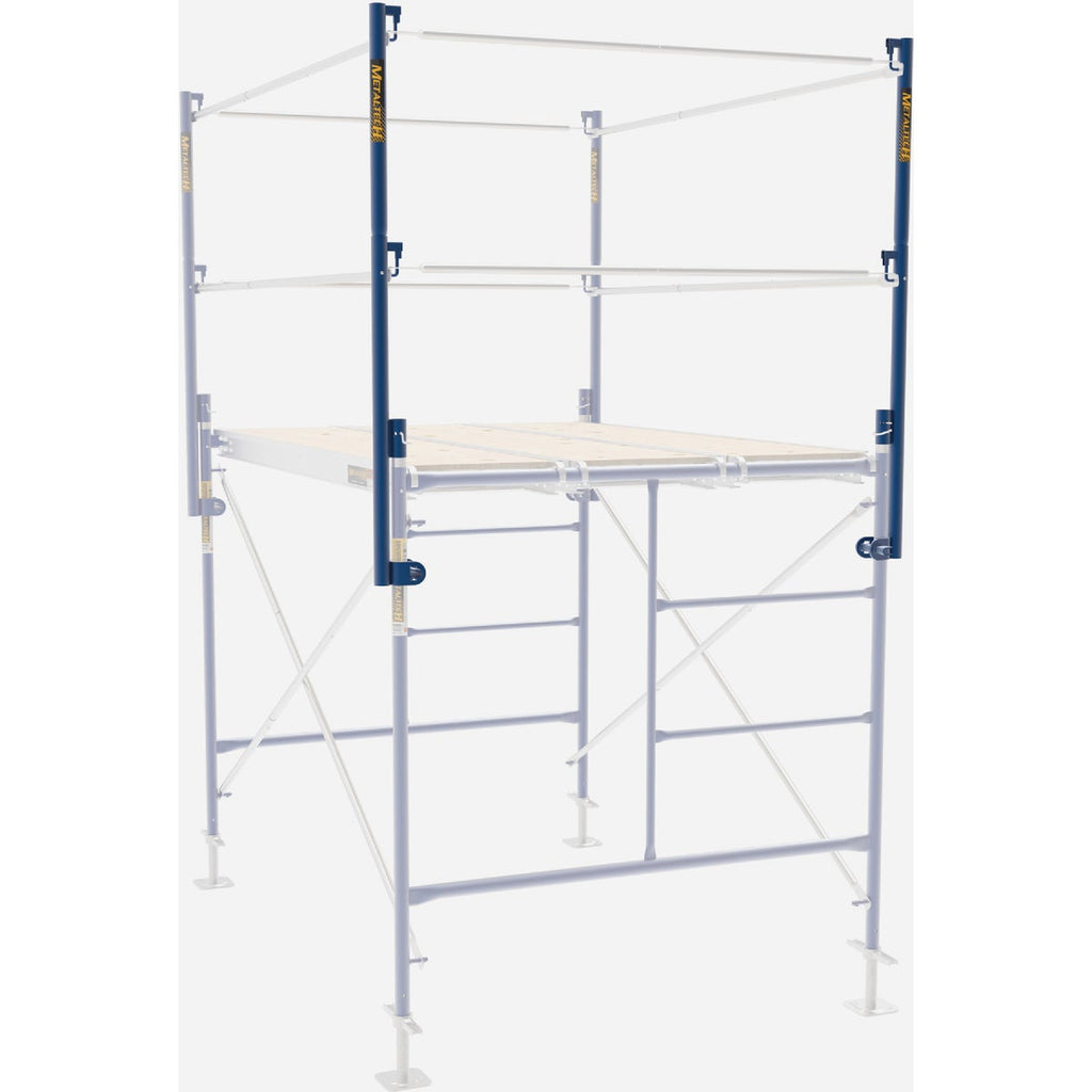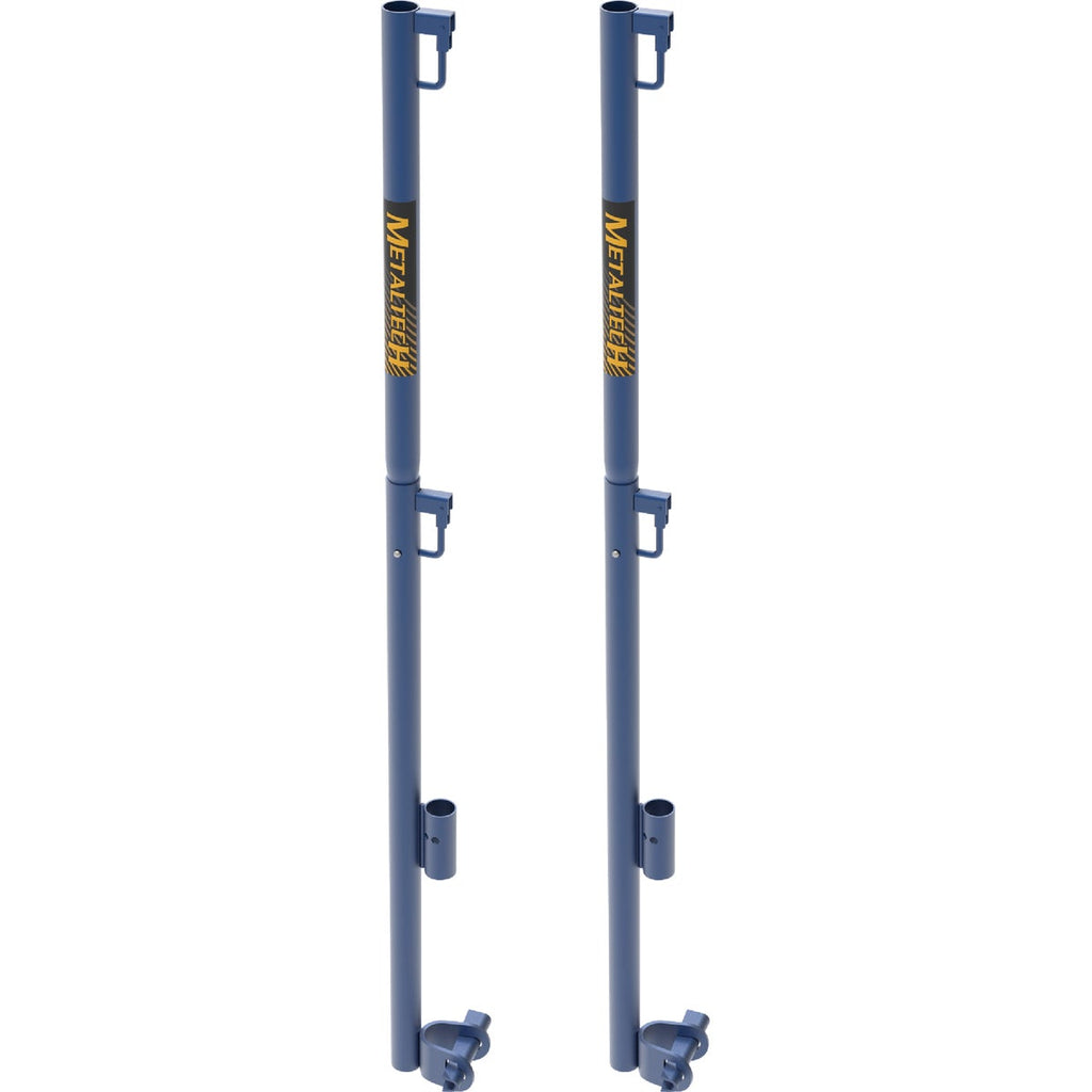 A compact solution for guardrail posts. Box of set of 2, sectional posts. Once assembled, the Metaltech 5 Ft. Steel Guard Rail Post with Wedge Clamp Support works together with rails on Metaltech Scaffolding Platforms and other compatible scaffold components. It's a sturdy, safe, and reliable metal pole that is designed to be used in sets of four to provide added safety on the worksite. Each scaffolding guard rail post is made from galvanized steel for toughness and durability and is finished with a blue powder coated paint for better anti-corrosion properties. These light guardrail post weigh only 11 Lb. each and are equipped with convenient wedge clamps for support. You can easily and safely attach or detach the clamp with any hammer you have handy. Our scaffolding equipment works with both standard mason and arch frames. These fall protection posts allow you to set up 5 Ft. or 10 Ft. long lightweight steel guard rails depending on the length of your platform and the needs of the jobsite. Each guard rail post exceeds OSHA standards of safety in providing protection to workers on the job. Metaltech builds and designs practical, effective, efficient, and safe work equipment for office and home use. We strive to incorporate new technology and innovation into equipment and accessories that make sense, so you can get jobs done easily, safely, and on time.