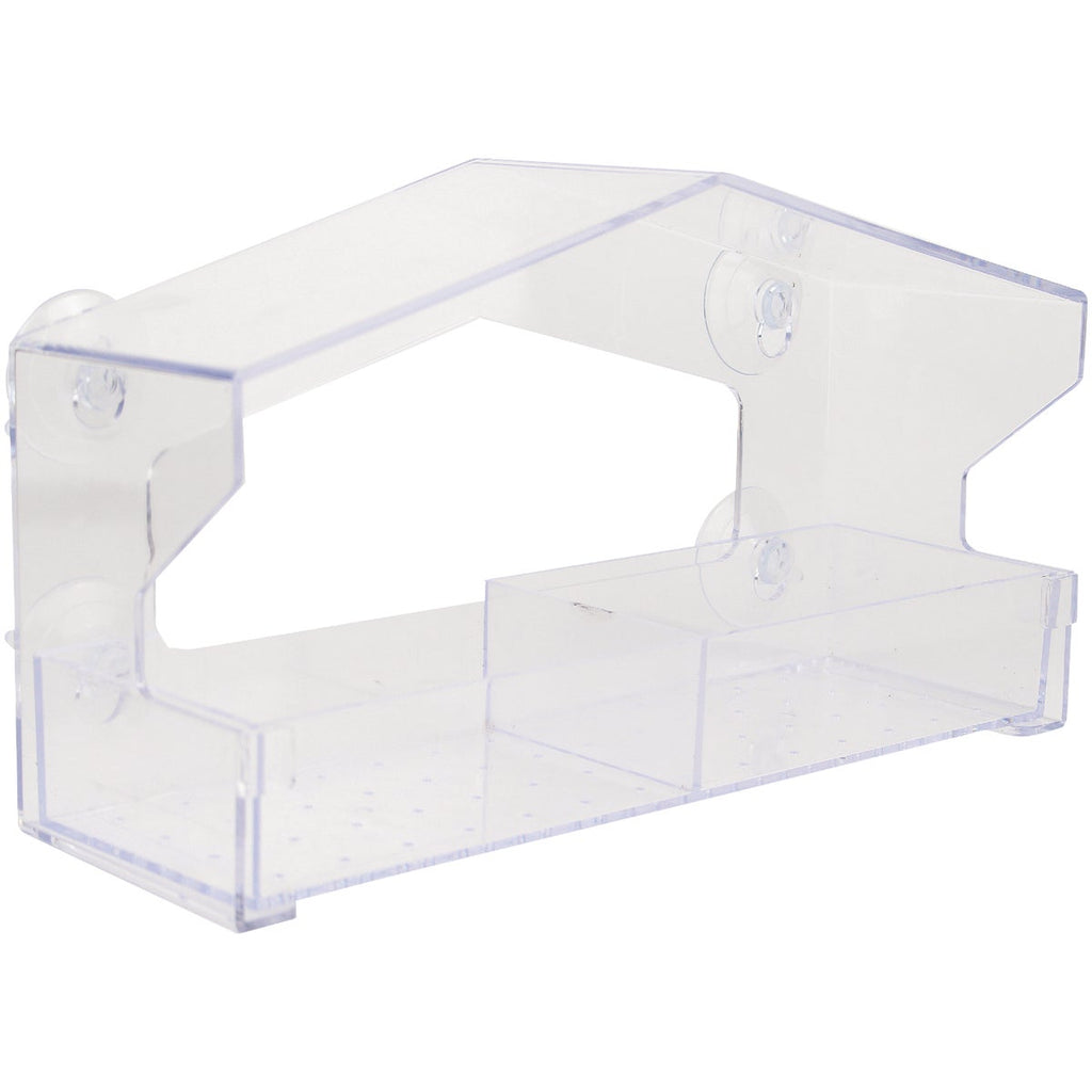 Window bird feed ideal to watch your favorite birds right outside your window. Holding up to 1-pound of seed, this bird feeder features a crystal-clear plastic construction that makes bird watching easy from any angle. Features a large, inviting entrance that will fit even large birds like cardinals. Attaches securely to windows with four suction cups, which provide a strong sturdy hold to prevent the feeder from falling off. For your convenience, this feeder features a removable seed tray to allow for easy filling and cleaning without detaching from the window. Plus, the feeder's angled roof helps to keep the feeder cleaner. To securely hang a window feeder, it is important to thoroughly clean your window first. Once clean, moisten the feeders suction cups with a bit of water or vegetable oil then apply the feeder to the glass. The moisture will create better suction, so the feeder stays in place.