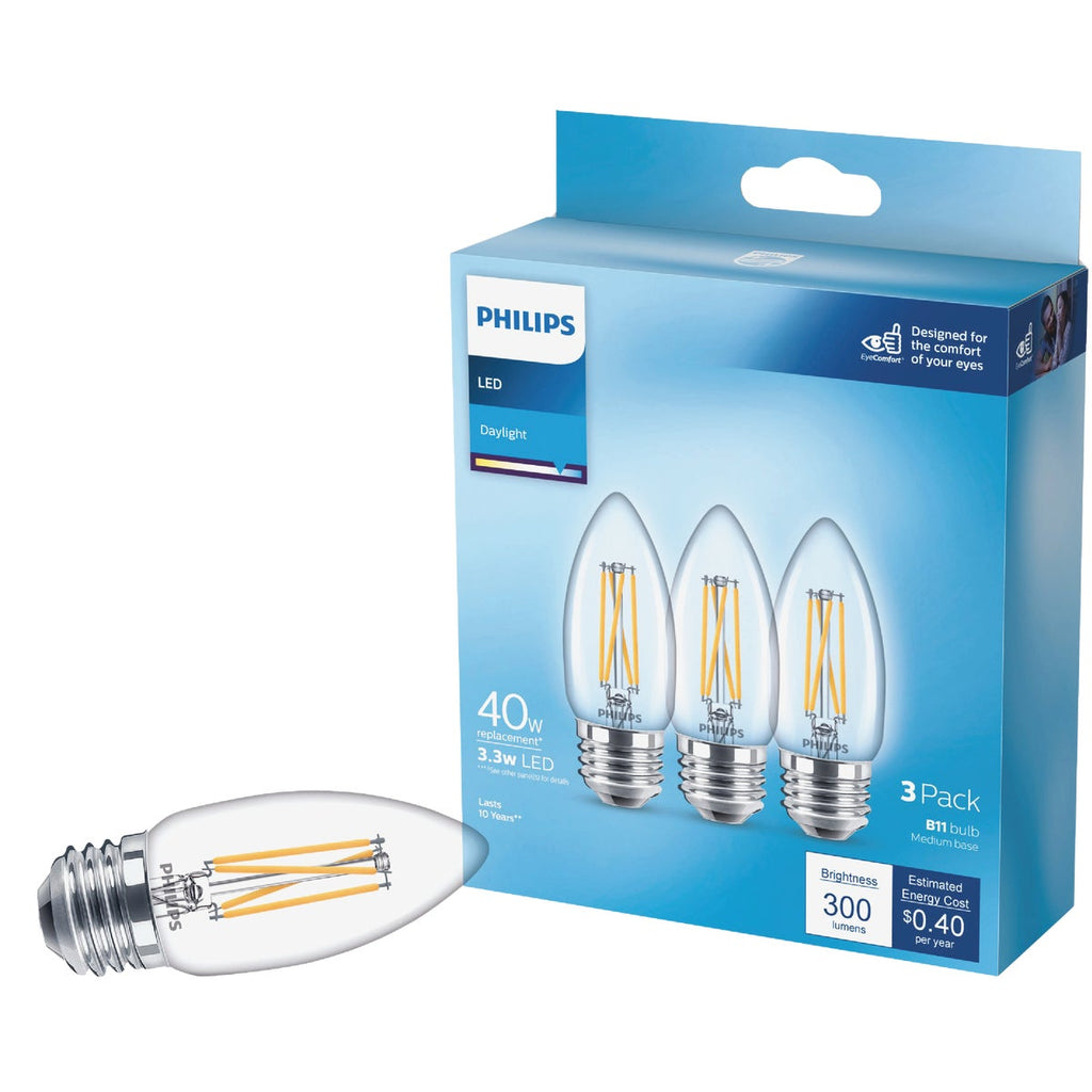 Philips 40W Equivalent Daylight B11 Medium Clear LED Decorative Light Bulb (3-Pack)
