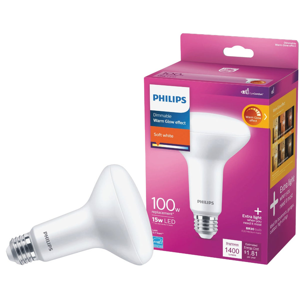Philips Warm Glow 100W Equivalent Soft White BR30 Medium Dimmable LED Floodlight Light Bulb