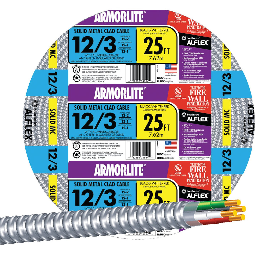 Southwire 25 Ft. 12/3 MC Armored Cable Electrical Wire