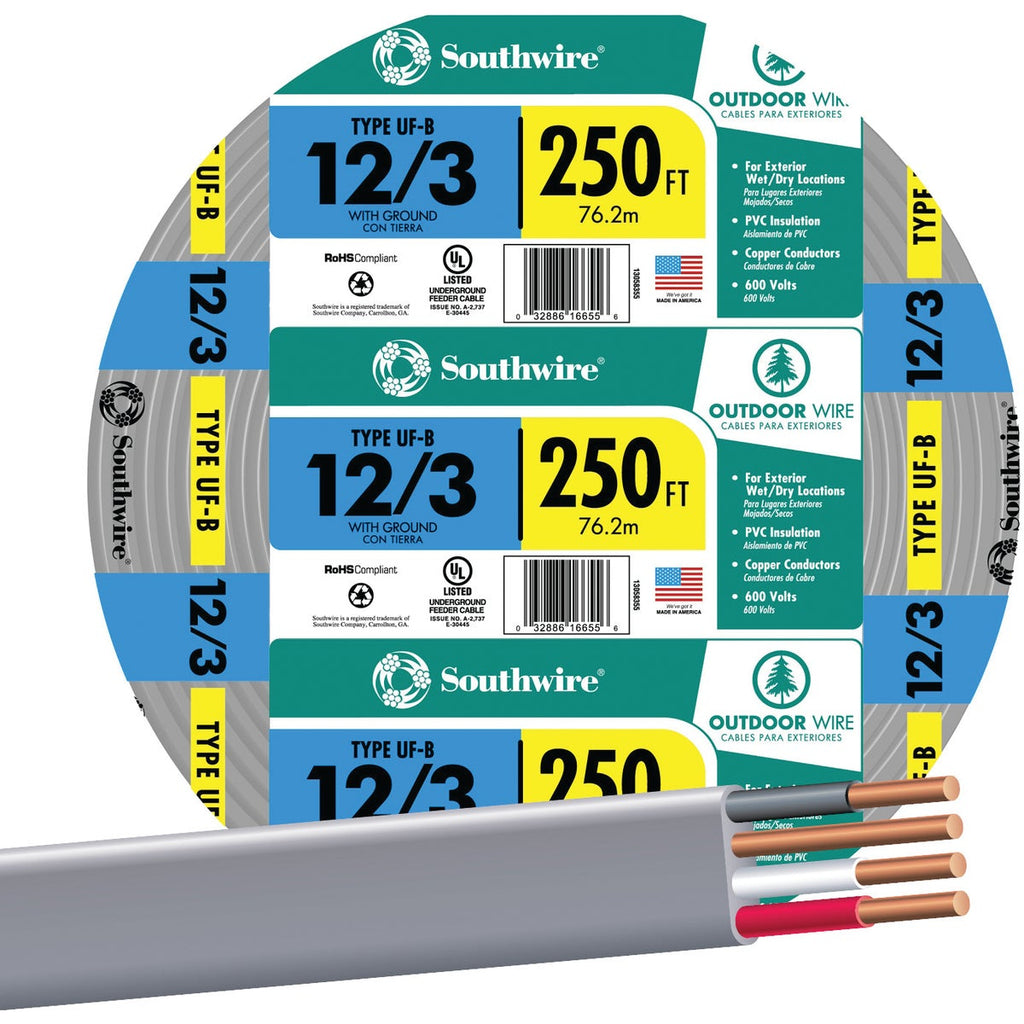 Southwire 250 Ft. 12 AWG 3-Conductor UFW/G Electrical Wire