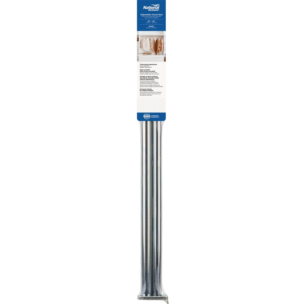 Stanley National 30 In. To 48 In. Adjustable Closet Rod, Bright Steel
