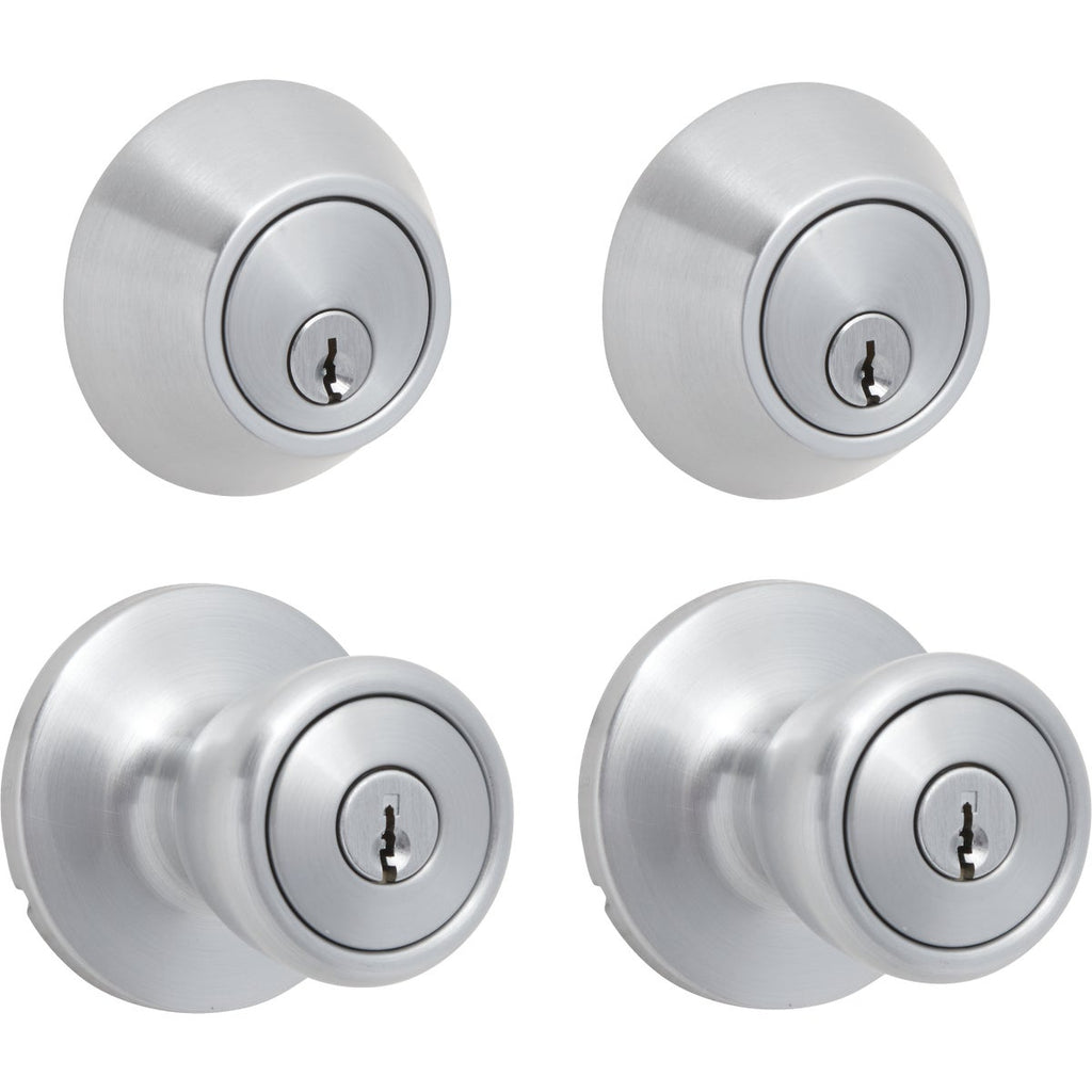 Steel Pro Satin Chrome Deadbolt and Door Knob Combo