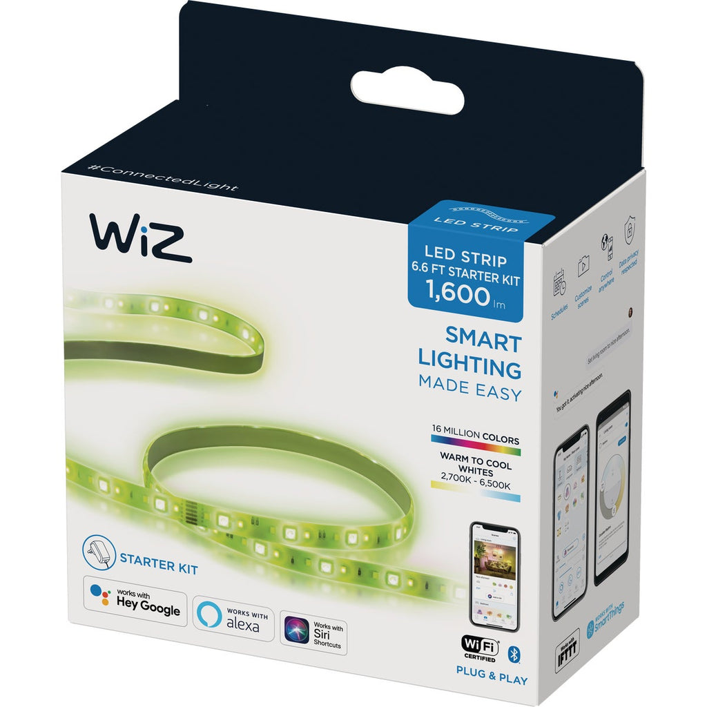 Smart LED (light emitting diode) full color strip starter kit. Brings beautiful indirect light into your home. Simply stick the flexible strip to any surface like tray ceilings or under cabinets. Starter kit includes a 2-meter strip light, controller, and power driver. No additional equipment required. Can easily be trimmed for customized fit and extended up to 10 meters (extension sold separately). Features smart dimming, programmable schedules, and control from anywhere with a smart device. Provides 1600 lumens of light output, and 16 million colors - adjustable from warm white to daylight. Compatible with Google, alexa, and Siri. Wi-Fi certified. Easy plug and play installation.