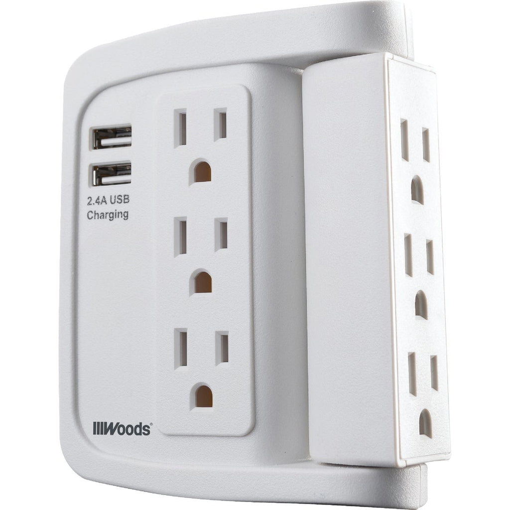 Woods 2-USB/6-Standard Outlet 2.4A/15A White Swivel Surge Tap