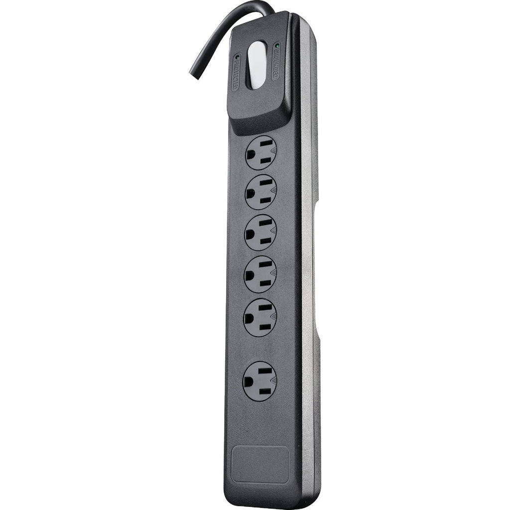 Woods 6-Outlet 1440J Black Surge Protector Strip with 4 Ft. Cord
