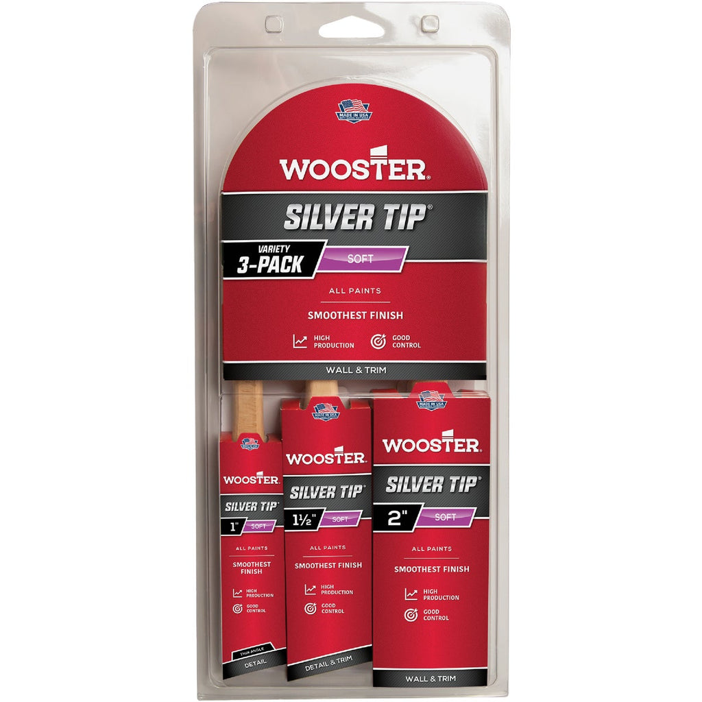 Wooster SILVER TIP 1 In., 1-1/2 In., 2 In. Angle Sash Polyester Paint Brush Set (3-Pack)